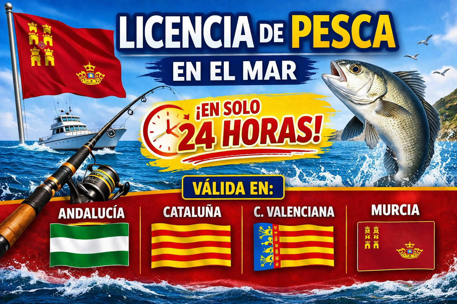 En solo 24 horas recibirás tu licencia de pesca marítima. Válida en Andalucía, Cataluña y C. Valenciana.